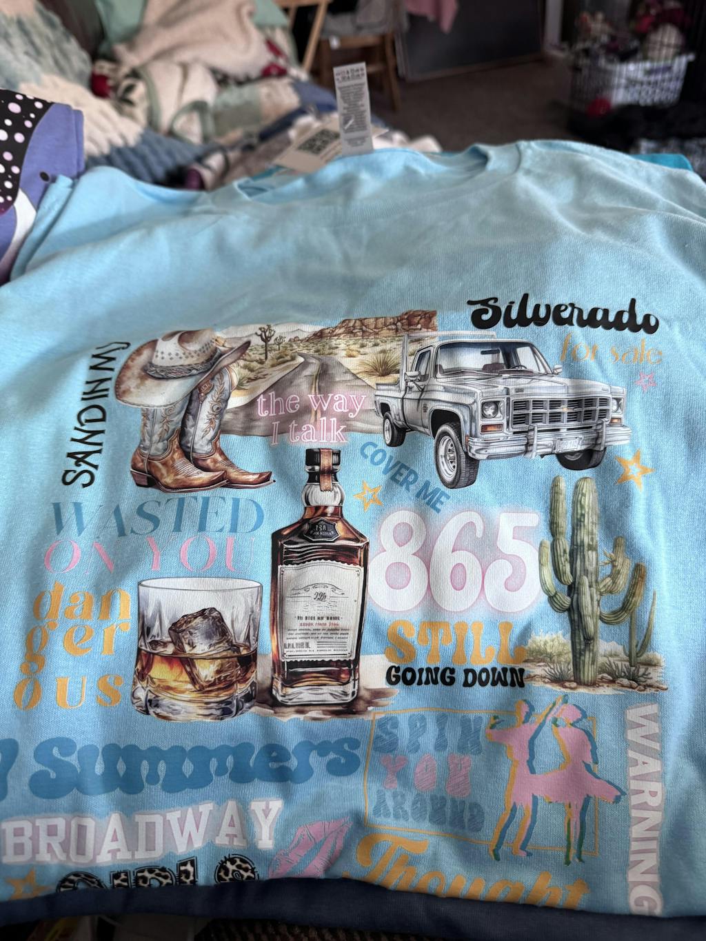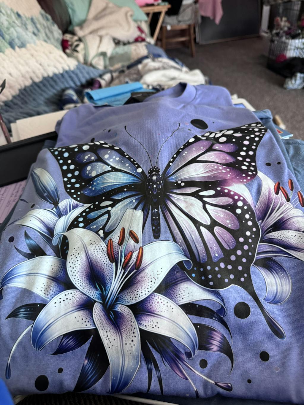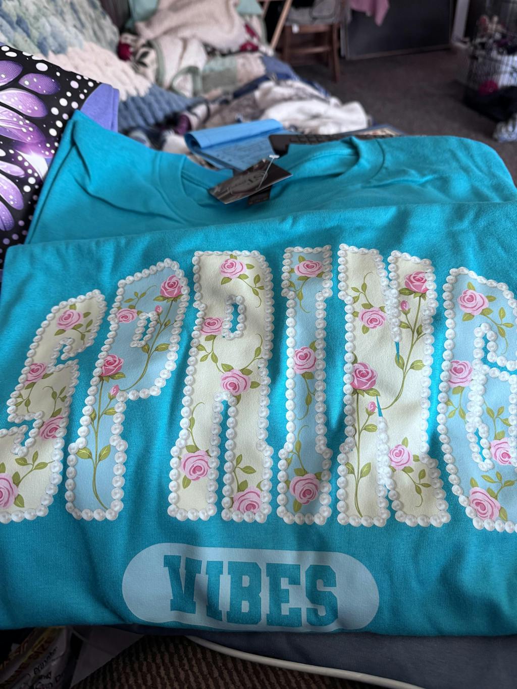 I love both the shirt and the sweatshirt. The graphics are amazing and so full of bright colors.